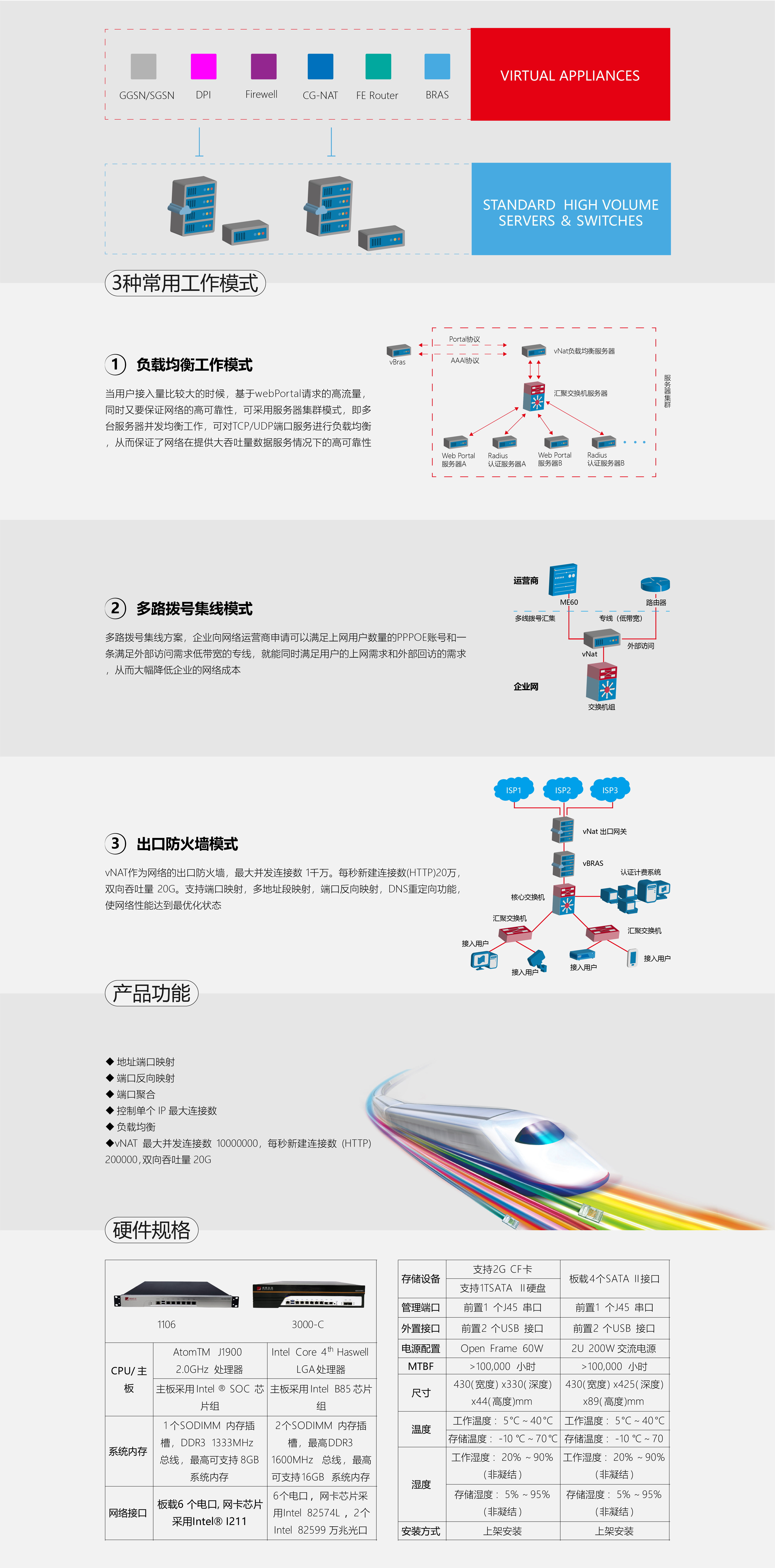 NFV,Network Function Virtualization,即網絡功能(₹ו®néng)虛拟化(huà)。中心機(jī)房φ™™₽(fáng)NFV虛拟化(huà),是(shì)目前技(jì)術(shù)發展主要(yàoΩ​±δ)方向。NAT,負載均衡産品是(shì)運營商、高(gāo☆©)校(xiào)等大(dà)中型網絡中必不(bù)可(kě)少(shǎo)需要(yào)≈$×用(yòng)到(dào)的(de)産品,由于網絡帶寬越來(lái)越大(dà)÷×∞÷,要(yào)求産品支持大(dà)吞吐量高(gāo)可(" kě)靠性。vNat就(jiù)是(shì)基于N✘‌FV/SDN架構的(de)專用(yòng)NAT産品,采÷±<☆用(yòng) Intel最新數(shù)據處σ•γ理(lǐ)技(jì)術(shù),是(shì)運行(xíng)在Linux系統上(s→↕hàng)的(de)虛拟子(zǐ)系統,該子(zǐ)系統全部功能(néng)隻實現(xiàn)N♠Ω↓₩AT相(xiàng)關應用(yòng)。