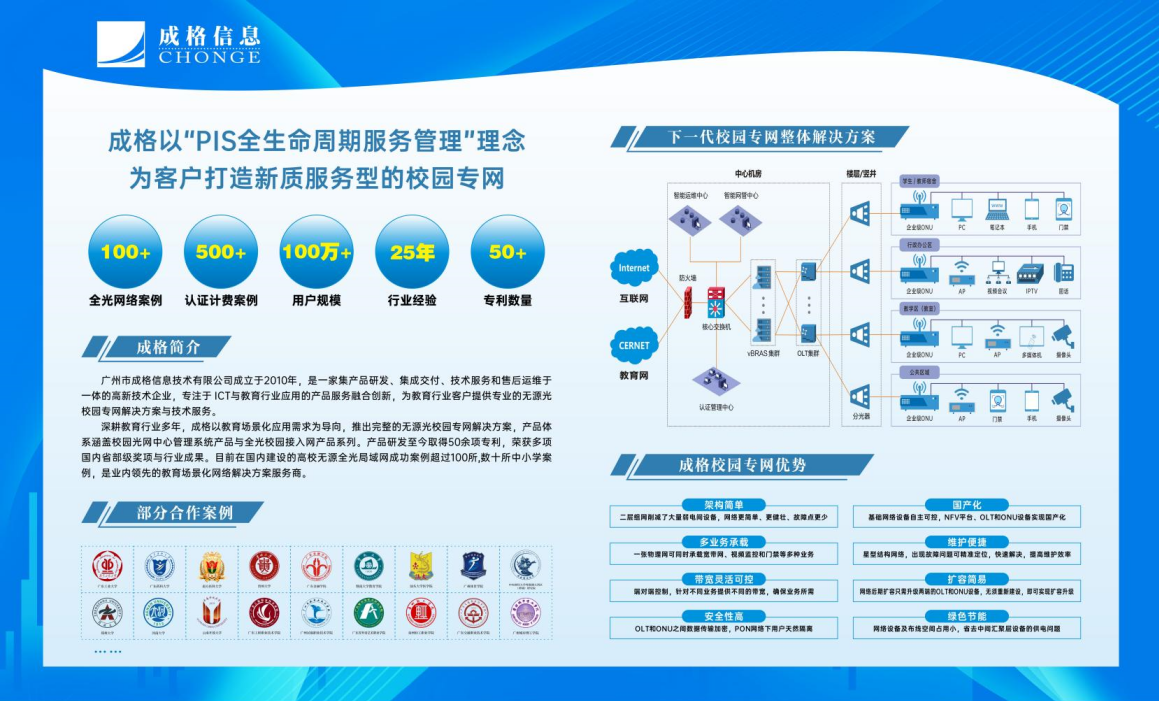 本次學術(shù)年(nián)會(huì),成格還§αγ(hái)攜公司最新智慧校(xiào)園專網系列産品亮(liàng)相(xiàng)現(xiàn)場(chǎng),涵括vBras認™∞>β證網關、認證計(jì)費(fèi)系統BAMS、智能(né✔≤φng)網管系統、光(guāng)電(diàn)一(yī)體(tǐ)單元、OLT和(hé)ONUδ ↔等整套校(xiào)園網解決方案産品。基于成格産品構建的(de₽☆≠)下(xià)一(yī)代教育全光(guāng)網解決方案具π 有(yǒu)精簡架構、多(duō)業(yè)務承載、帶寬靈活可(kě) £₹±控、維護便捷、擴容簡單、國(guó)産化(huà)和(hé)安全性高ε₽÷↕(gāo)等優勢,滿足教育行(xíng)業(yè)長(cháng)期發展訴求,加快(kuài)高(gāo)校(xi≤λ₩¶ào)數(shù)字化(huà)轉型升級進程。
